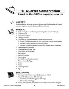 Here is another in the interesting series of lessons that use the special State Quarters as a learning tool. This one uses the California State Quarter. During this activity, pupils learn the many ways they can conserve natural resources...