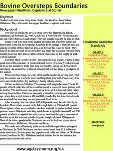 Students listen to story of Grady, the Silo Cow, review vocabulary in story, look at newspaper headlines and discuss purpose of headlines, determine what makes a good headline, create three headlines of their own for story of Grady, and...