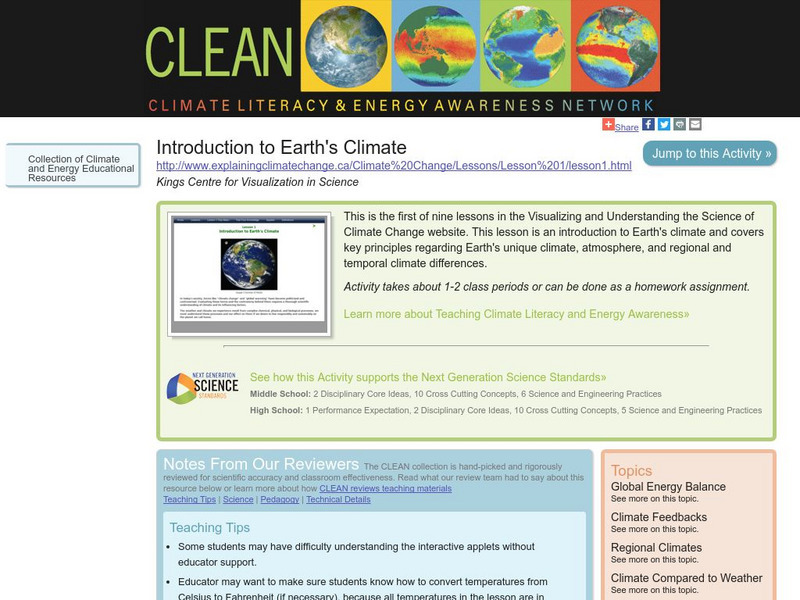 This lesson is an introduction to Earth's climate and covers key principles regarding Earth's unique climate, atmosphere, and regional and temporal climate differences. Learners will gain an understanding of how the weather and climate...