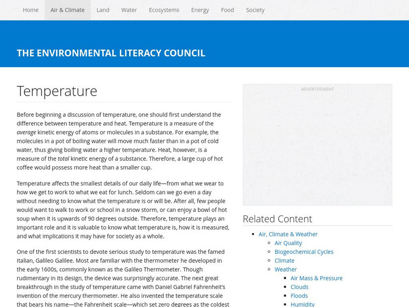 The difference between heat and temperature is explained, followed by a discussion of temperature and its relation to global climate change. Gallileo Galilee, Daniel Gabriel Fahrenheit, Anders Celsius, and Carl Linnaeus are mentioned in...