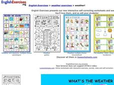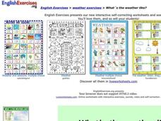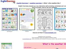 In this ESL weather worksheet, students listen to description of weather conditions found beneath their pictures, then listen again and check the correct answer when they hear the pattern described and complete a weather crossword puzzle.