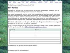 In this life cycles worksheet, learners compare the life cycles of 2 different species and answer short answer questions about them. Students can choose the species to compare and then answer 6 questions.