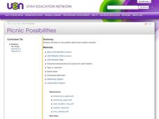 Fourth graders plan a picnic using weather data. Using accumulated weather data from various sources, they create a graph of the weather conditions in their region for a given period of time. Students interpret this data to predict the...