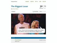 Sometimes losing is actually winning! Learners use a proportional analysis to compare percent weight loss of contestants on The Biggest Loser. The resource provides data and clips from the show to facilitate the lesson.