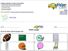 In this length worksheet, students number the objects in order from shortest to longest. Students use the longest side of each to determine the order of length for the 9 problems.