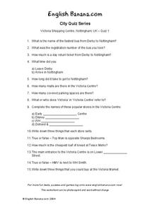 In this United Kingdom cities learning exercise, students read and answer questions related to a text about the Victoria Shopping Centre in Nottingham. Students answer 15 questions.