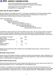 Students explore the topic of energy conservation. They identify energy sources, complete a chart and a questionnaire, and write two paragraphs summarizing the lesson information and ways to conserve energy.