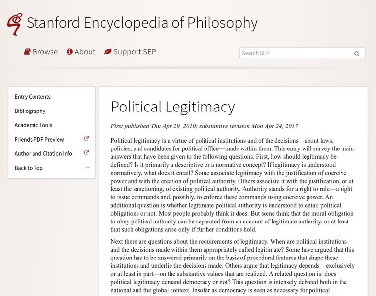 Stanford Encyclopedia of Philosophy: Political Legitimacy