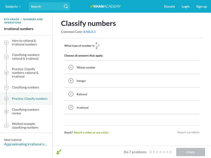 In this exercise, students practice classifying numbers. Students receive immediate feedback and have the opportunity to get hints and try questions repeatedly.