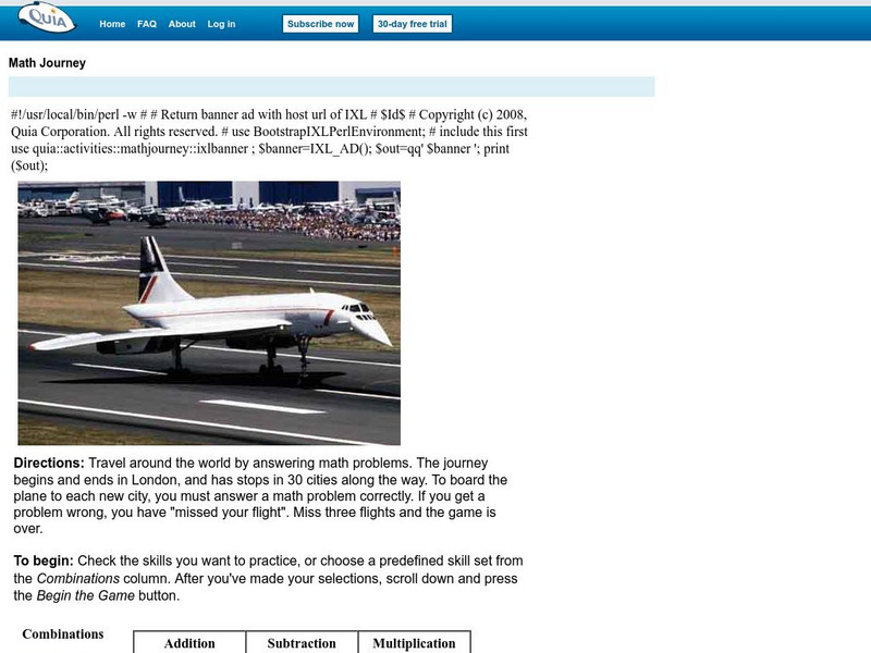 In this online game London is your starting place! This game lets you practice addition, subtraction, multiplication, division and rounding as you "Travel," around the world. You can also choose the level of difficulty