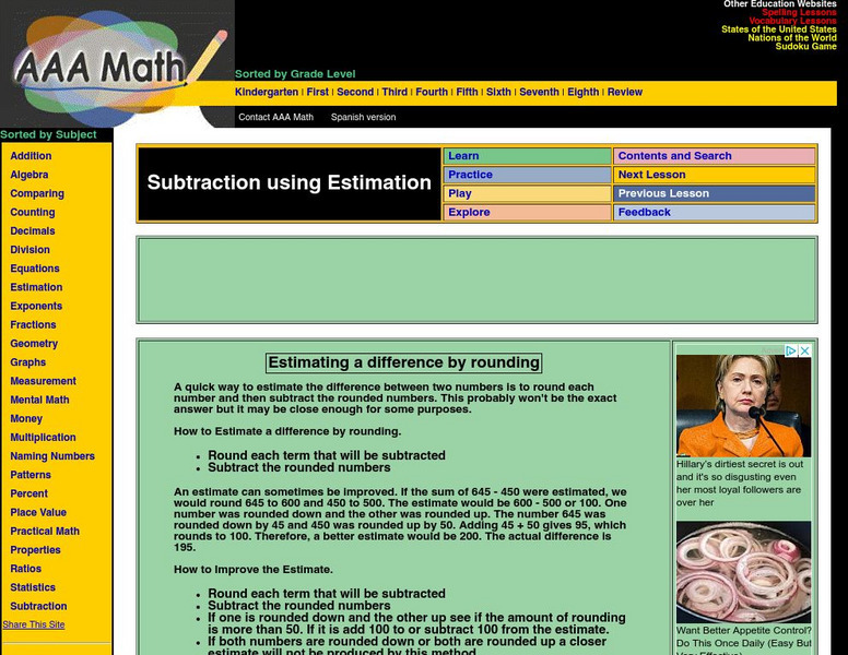 This site explains how to estimate differences by rounding. Games and exercises are provided to practice the skill.