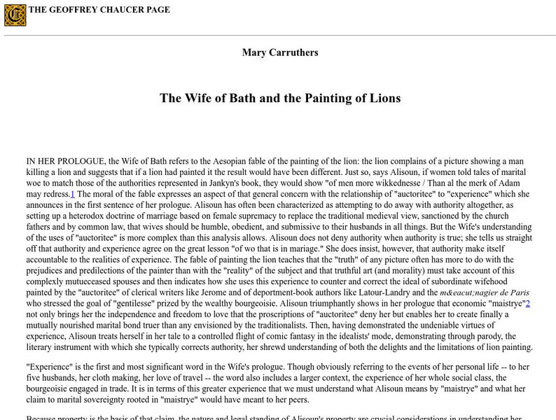 Harvard: The Geoffrey Chaucer Page: The Wife of Bath and the Painting of Lions