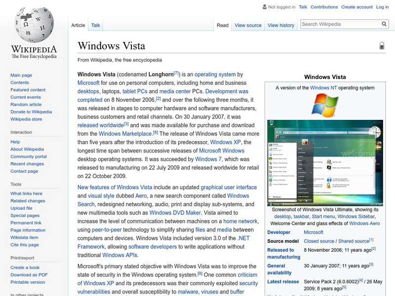 Wikipedia: Windows Vista