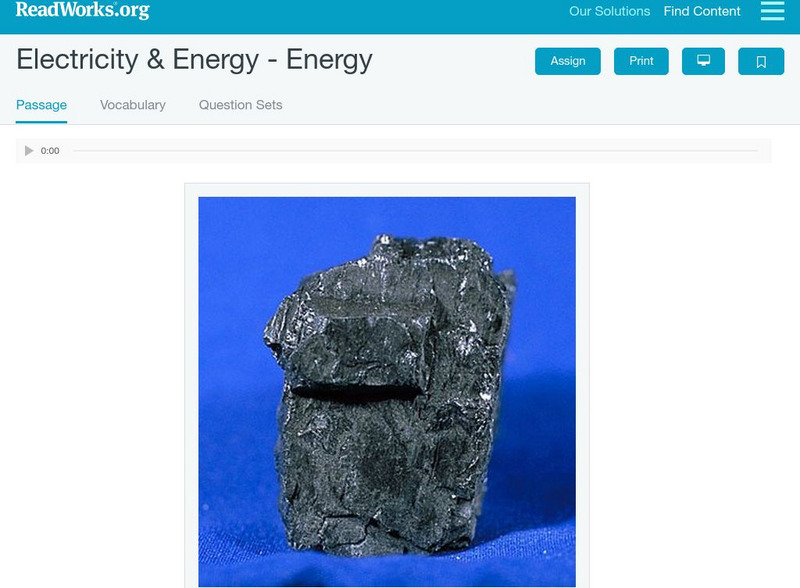 [Free Registration/Login Required] An informational text about energy. A question sheet is available to help students build skills in reading comprehension.
