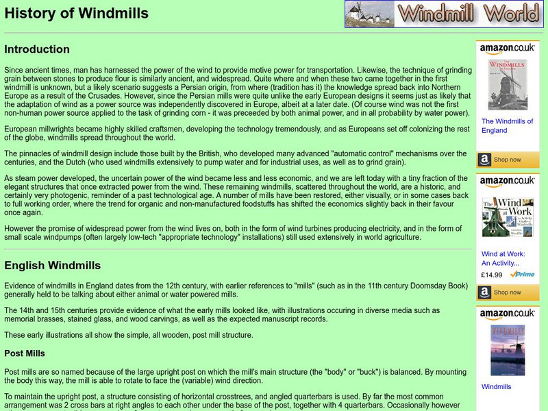 A nice account of the history of windmills from earliest times to the present. Includes links to other windmill pages.