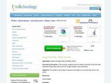 Students create a list of the five most important things they need to survive a winter night. For this survival lesson, students work in groups to list things they would need to survive a night outside in winter. Students remove items...
