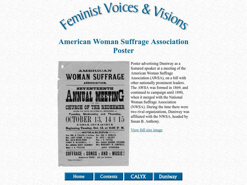 A poster and description from the American Woman Suffrage Association (1869-1890).