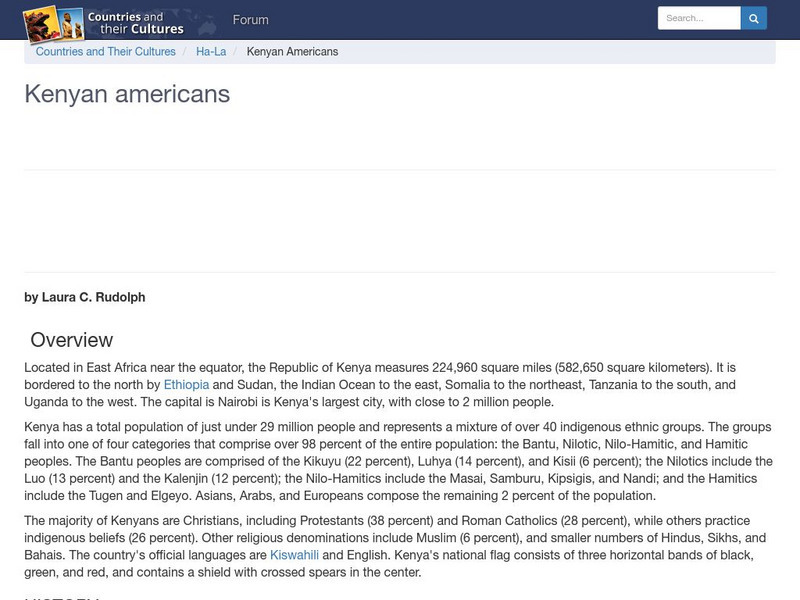 Provides an overview of the traditional culture and lifestyle of Kenyan Americans. (Note: Content is not the most current.)