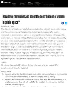 Public art, especially monuments and memorials, are designed to celebrate and honor those who have made significant contributions to a community or even an entire nation. Here's a instructional activity that asks scholars to consider who...