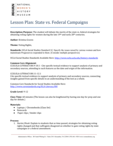 Campaigns to gain voting rights for women during the 19th and 20th centuries took place on both the state and federal level. After examining primary sources that document both types of campaigns, class members debate the merits of the...