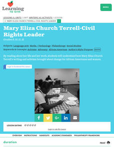 Students examine writings of Mary Eliza Church Terrell. They role play themselves as an African American woman in the 19th century. They describe her actions and how they benefited minorities.