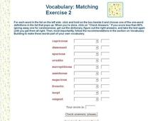 In this online interactive vocabulary worksheet, students respond to 10 matching questions regarding vocabulary words. Students may check their answers immediately.