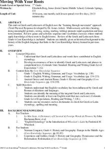 Students examine Greek and Latin root words. They research the history of the English language, solve word games and puzzles, write paragraphs about the impact of Greek and Latin on the English language, and create flip chart study guides.
