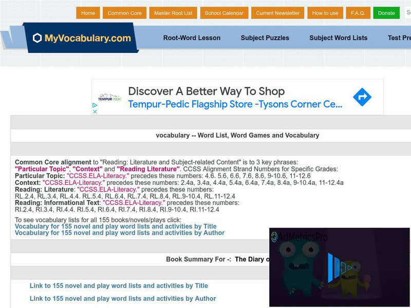 My vocabulary.com: Book Summary for the Diary of Anne Frank
