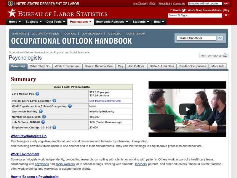 Bureau of Labor Statistics: Psychologists