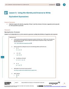 The fifth installment in the series of 28 lessons helps math scholars explore the result of adding opposite numbers and multiplying reciprocals. Through this exploration, they develop a working definition of identity and inverse properties.