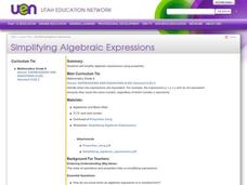 Sixth and seventh graders explore the concept of simplifying algebraic expressions. They review the order of operations and apply properties to simplify and compare them. The author suggests using a "Boxes Game" as a motivator to get...