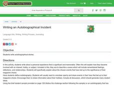 Students explore autobiographical stories. They write about a personal experience that is significant and memorable. Students specifically explain the chosen events. They define autobiography and share their stories.
