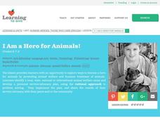 Students explore the humane treatment of animals. In this character development and civic responsibility lesson, students define "hero" and brainstorm related attributes. Students complete an action plan using the "rational approach"...