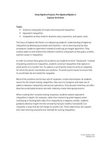 Play a game of capture the points. Young scholars receive a number line with specific points graphed and must write an inequality that captures all the points. The second task of the algebra project is to write an inequality with...