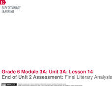 Get ready to review and revise! Scholars peer edit each other's literary analysis essay drafts. Next, using peer and teacher feedback, pupils compose their final drafts.
