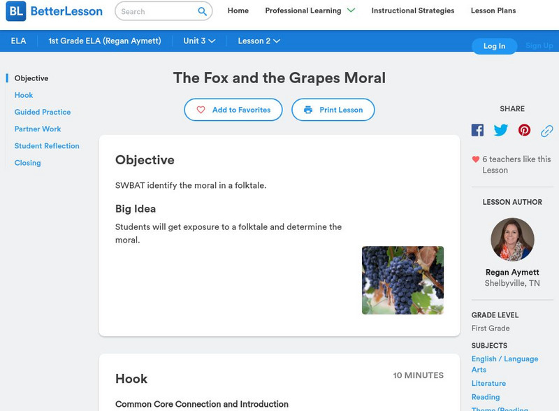 Learners will get exposure to a folktale and work to understand the moral. This lesson uses two fables "The Fox and the Grapes" and "The Fox and the Hen". The lesson involves guided practice where the students write notes on the left...