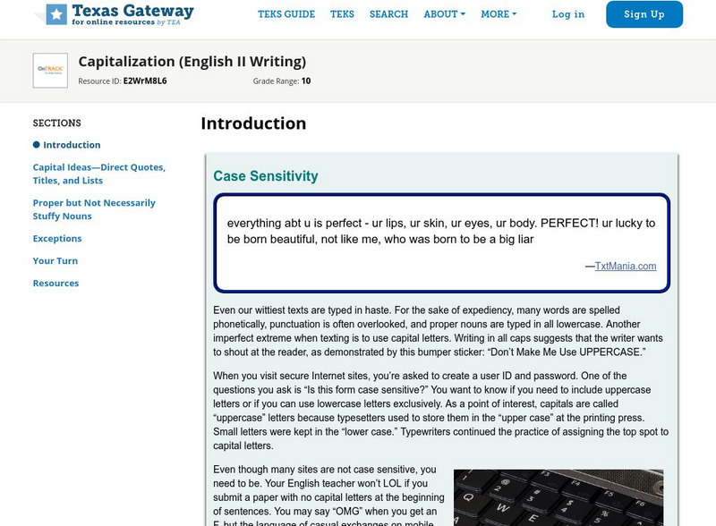 In this lesson, students will learn that the language of casual exchanges on mobile devices is not acceptable in formal writing. They also develop some case sensitivity, the ability to use capital letters appropriately as you proofread...