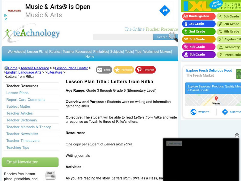 For this 3rd through 5th grade lesson, students read the book Letters from Rifka by Karen Hesse and write responses as Tovah to three of Rifka's letters in their journal.