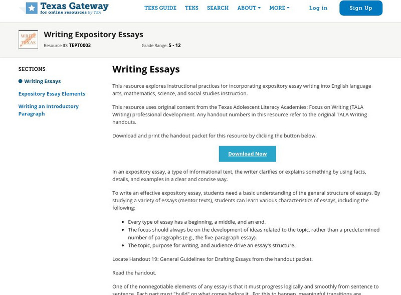 Texas Gateway: Teaching Expository & Persuasive Texts: Writing Expository Essays