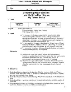 Fifth graders compare the life and times of Roger Williams and Martin Luther King Jr. In this life comparison lesson plan, 5th graders explore the key events that happened in each of their lives and fill out worksheets, write essays, and...