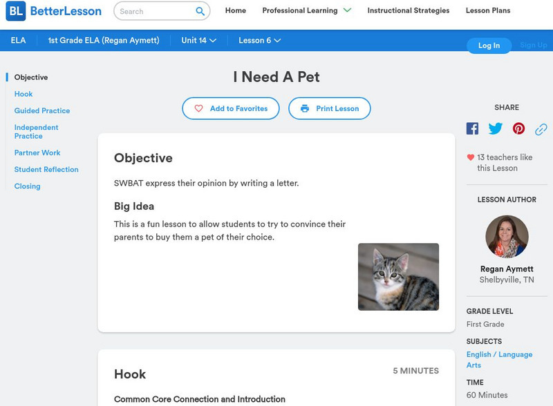 This is a fun lesson to allow students to try to convince their parents to buy them a pet of their choice in an opinion letter.