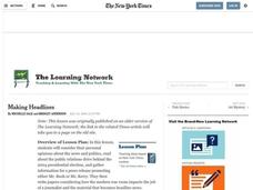 Students examine the use of sources and their quotes in news writing. They determine the reasons specific persons are used as sources and why their opinions are relevant to the article. In groups, they identify sources in articles and...