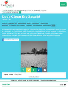 Students volunteer their time to clean a local park. They estimate the amount of debris they collect and make observations. They write a poem and draw an illustration about their experience.