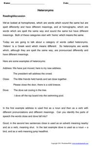 Challenge scholars to identify and use heteronyms in a sentence with a two-page worksheet designed to boost grammar skills.