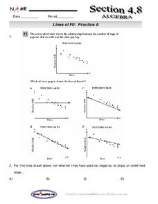 Students analyze graphs. In this algebra lesson plan, students find the line of best fit, using scatter plots. They calculate the sale of popcorn as it relates to the price. They then analyze the graphs for positive, negative and no...