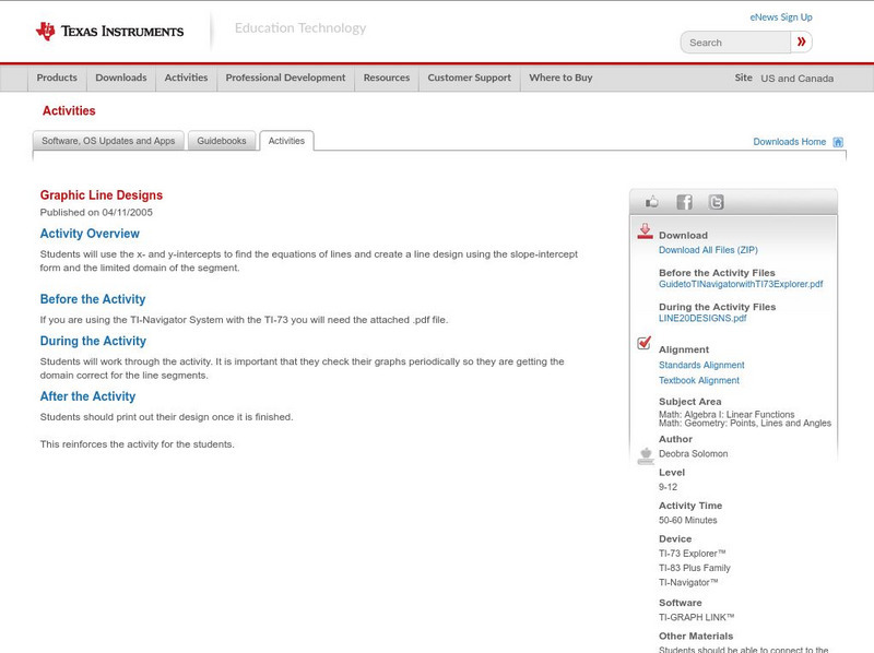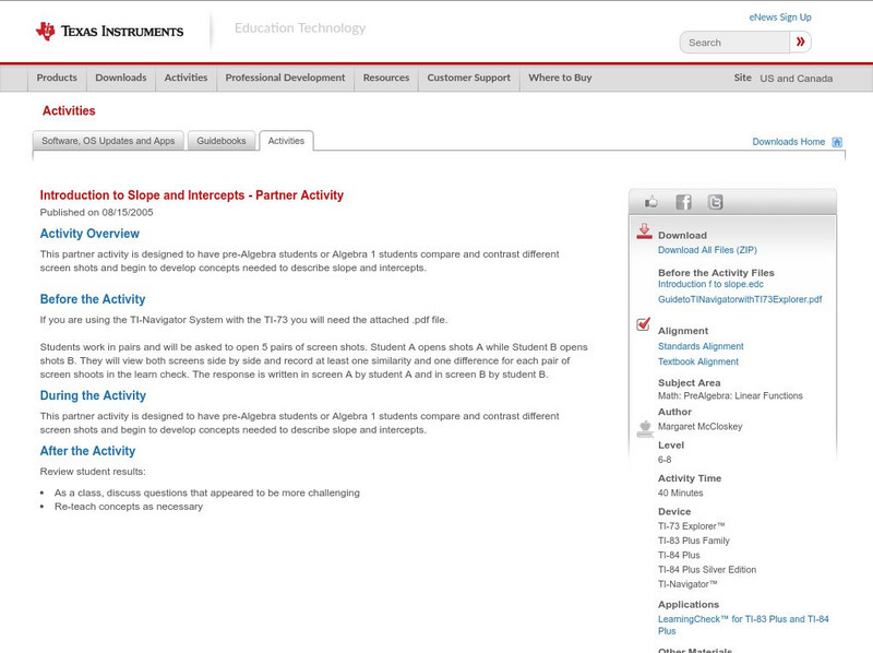 Texas Instruments: Introduction to Slope and Intercepts Partner Activity
