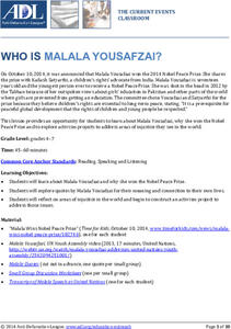 Malala Yousafzai may be young, but she's mighty! Young scholars listen to a short lecture about Malala's background, read an article about her winning the Novel Peace Prize, and meet in groups to discuss statements she has made. Class...
