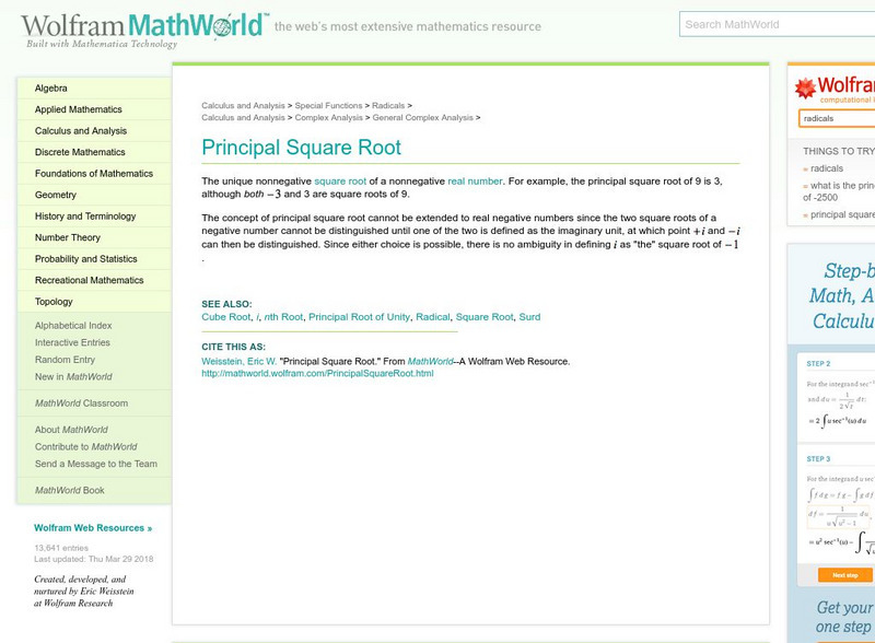 MathWorld offers an explanation for the concept of principal square root is found here.