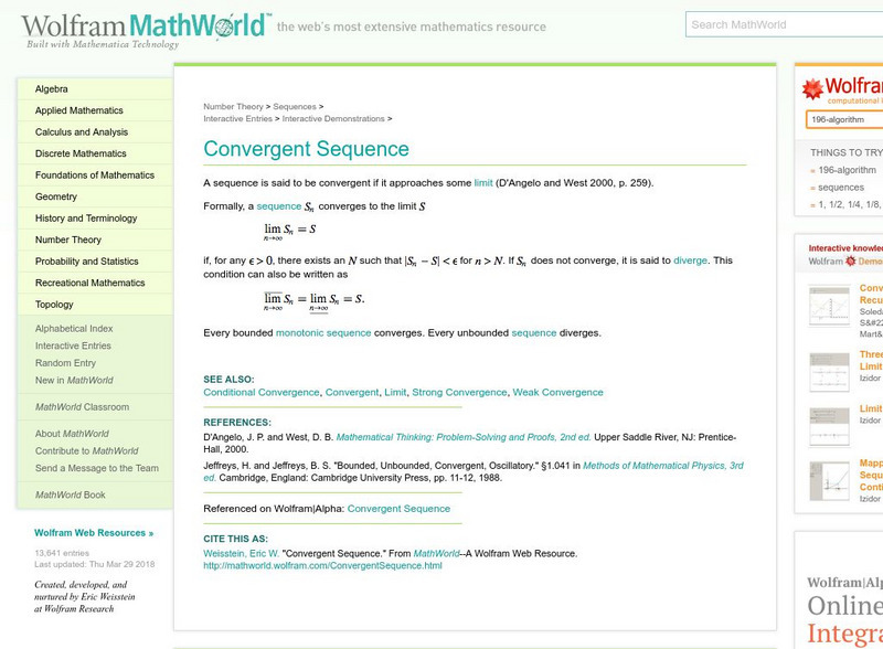 This site from MathWorld explains convergent sequences with links to related information. The information is very brief, but examples and formulas are provided.