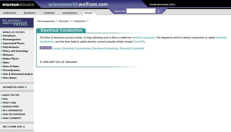 Wolfram Science World: Eric Weisstein's World of Physics: Electrical Conduction